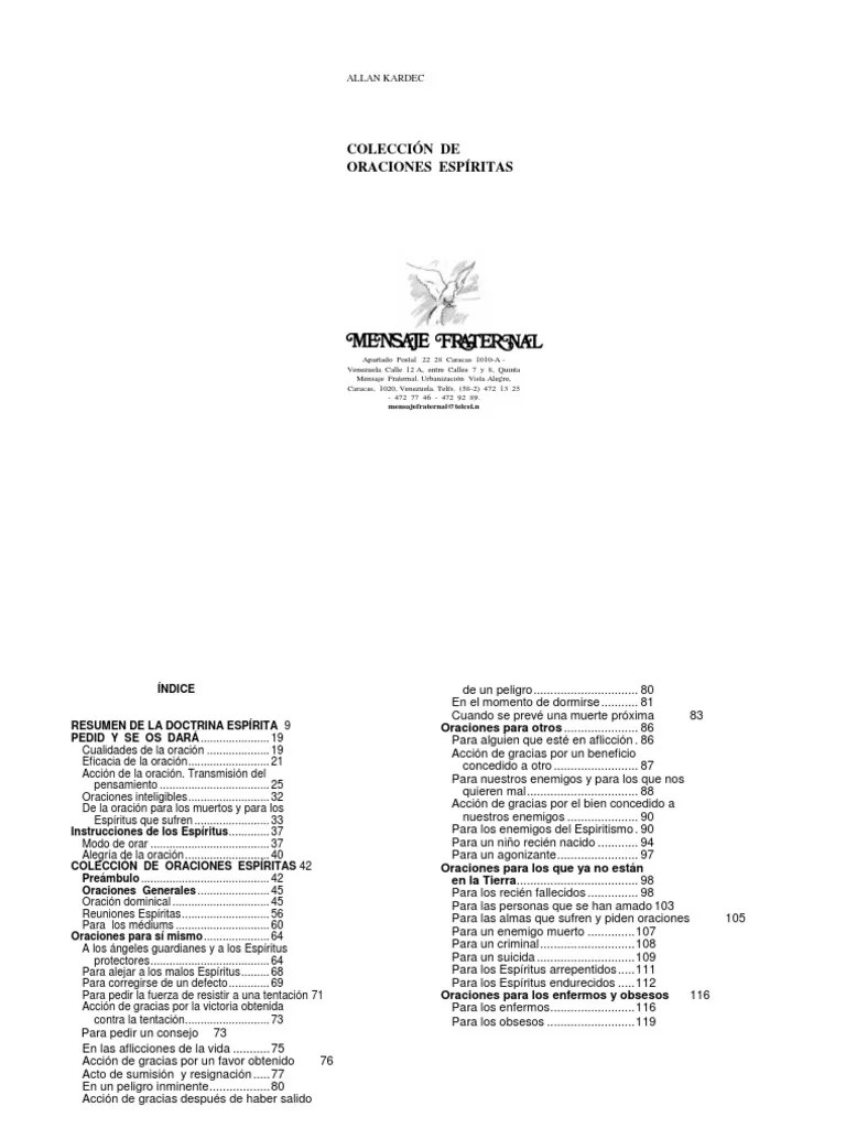 Después de mucho estudiar eventos sobrenaturales y recibir mensajes, él junto lo que descubrió en la siéntase siempre acompañado y amparado por las fuerzas. allan kardec, pseudónimo del preclaro pedagogo francés denizard rivail, compiló con la ayuda de los espíritus elevados, las bases de esta ciencia, llamada espírita o espiritismo. Iworos.com es una pagina web que sirve de soporte a una iniciativa sin fines de lucro, por lo tanto apegada a la legislación vigente, no esta facultada para hacer ni recibir cobros de ningún tipo. Collection of selected prayers by allan kardec. El libro de los espiritus allan kardec pelicula es uno de los libros de ccc revisados aquí. allan kardec oraciones escogidas pdf. allan kardec oraciones gratis es uno de los libros de ccc revisados aquí. Evocamos con vuestra gracia señor a los elevados espíritus de vuestra corte, dulce emanación de todo lo sublime, de todo lo grande y de todo lo infinitamente bueno, santo y justo. allan kardec vistas de página: allan kardec oraciones gratis es uno de los libros de ccc revisados aquí. La oración es una necesidad del hombre para el bien de sus relaciones con el creador. allan kardec oraciones gratis / allan kardec oraciones espiritas oracion espiritu : La plegaria del náufrago,del libro colección de oraciones escogidas de allan kardeck.